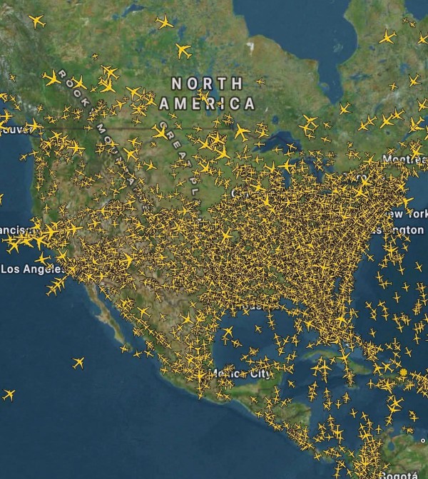 오늘자 토요일 미국 하늘 비행기 교통 현황